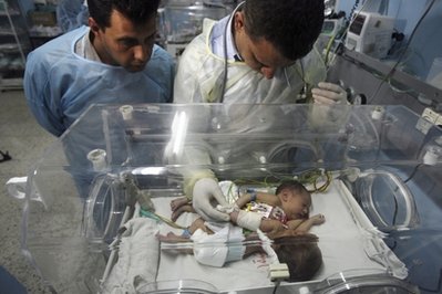 沙特衛生部人員稱這對連體嬰已經被送至沙特的國民警衛醫院。醫生表示,這對女嬰于3月27日出生在加沙南部城鎮汗尤尼斯,她們的胸部相連,共用一段小腸,但是她們都有各自的心臟、肺和其他器官,這增加了手術成功幾率。