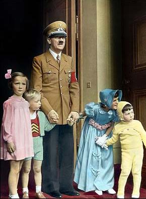 希特勒生前罕見彩照曝光 手牽兒童貌似慈祥(圖)