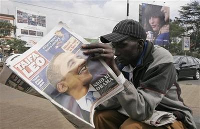 肯尼亞4日出版的報紙大幅登載有關奧巴馬的報道!犊夏醽啎r報》用整個頭版刊登了奧巴馬在白宮前的一幅照片,標題為“奧巴馬創造歷史”。
