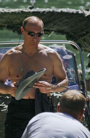 出生在圖瓦地區的緊急情況部長紹伊古成了普京在此休假的向導。他們一起從圖瓦首府克孜勒乘直升機經過40分鐘的飛行來到赫姆奇克河地區,搭起了野外帳篷。高山地區溫差較大,這里白天還暖和,夜間氣溫則會降到零度以下,不過普京總理不怕寒冷,只蓋一床普通棉被,根本沒打開溫暖的睡袋。上午普京總理和紹伊古部長一起乘氣墊摩托艇到赫姆奇克河游玩,這里河水湍急,河灣陡而多,寒冷刺骨,不過在當地出生的紹伊古部長就像到了溫暖的大海中一樣下河游泳,讓許多人驚嘆不已。