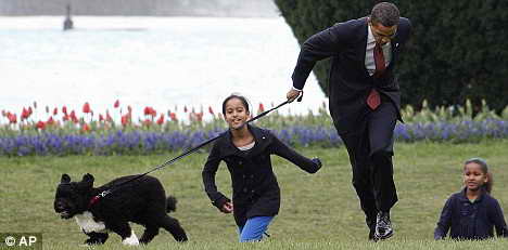 據英國《每日郵報》報道,如果奧巴馬認為競選美國總統是一件很辛苦的事,那他現在可能已在著手應對一項更為艱難的挑戰。在“第一狗”來到白宮數小時后,奧巴馬就因為趕不上它的步伐而差點摔倒,這使他的兩個女兒感到很好笑。
