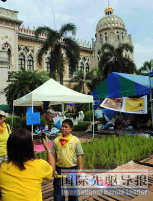 插秧種稻,唱戲彈琴,賣衣服做按摩,演講喊口號……這些看起來互不搭界的行為,同時(shí)發(fā)生在泰國的行政中心——曼谷的總理府,使它最近成了曼谷這一著名旅游城市的另類“新景點(diǎn)”。