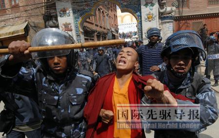 次仁們算是幸運的。《國際先驅導報》記者在現場看到,被煽動沖在前面和尼泊爾警方對峙、沖突的多是青少年,而那些“藏獨”骨干則在現場附近拿著手機指揮、清點人頭。
