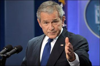 布什在白宮召開記者會說:“我們在伊朗有位領(lǐng)導(dǎo)人曾宣布,他想要摧毀以色列。”布什說:“所以我告訴大家,如果你們很想要防止第三次世界大戰(zhàn),你們似乎應(yīng)該全心阻止他們?nèi)〉弥圃旌宋浔仨毜闹R。”