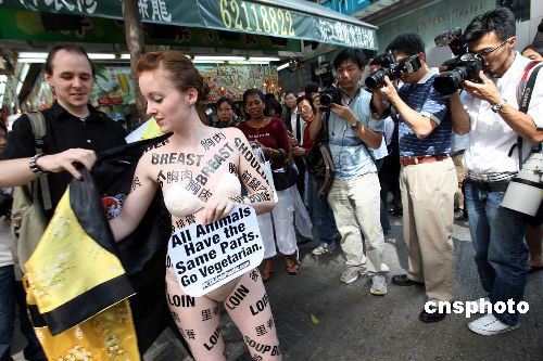 善待動物組織女郎街頭裸體抗議肉食工業(2)