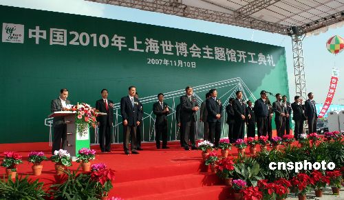 十一月十日,中國2010年上海世博會永久性場館——世博會主題館正式開工建設。此舉標志著上海世博會永久性場館建設進入全面推進階段。這一主題館地上建筑面積為八萬平方米,地下建筑面積為四萬平方米,建設周期約為兩年。主題館項目位于上海世博會規劃圍欄區浦東區域、“世博軸”西側,毗鄰規劃中的磁懸浮世博園站。中新社發 許曉青 攝