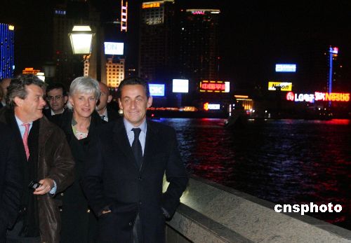 組圖:薩科齊漫步上海黃浦江畔欣賞夜景