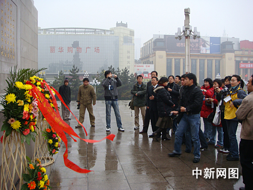 江西行網(wǎng)媒記者向"八一南昌起義紀(jì)念塔"敬獻(xiàn)花籃