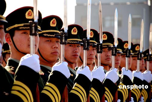 1月3日,中國(guó)人民解放軍三軍儀仗隊(duì)官兵在北京軍營(yíng)內(nèi)進(jìn)行隊(duì)列訓(xùn)練。中國(guó)人民解放軍三軍儀仗隊(duì)主要擔(dān)負(fù)迎送外國(guó)國(guó)家元首、政府首腦、軍隊(duì)高級(jí)將領(lǐng)來(lái)訪、外國(guó)領(lǐng)導(dǎo)人向人民英雄紀(jì)念碑敬獻(xiàn)花圈時(shí)的禮兵、國(guó)慶閱兵、大型軍事演習(xí)、重要會(huì)議的標(biāo)兵和首都一些重要目標(biāo)和敏感地區(qū)的維穩(wěn)應(yīng)急任務(wù)。 中新社發(fā) 楊慧峰 攝