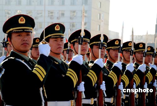 中國三軍儀仗隊(duì)天寒地凍熱練兵(2)