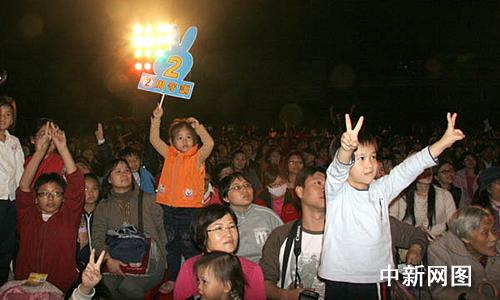 一月十日晚,臺灣“立委”候選人周守訓造勢晚會上,不少兒童也熱情參與。 作 者:孫自法