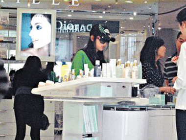 發完媚功,有氣無力的黃圣依到廣場地下的化妝柜位買護膚品,能夠得CEO女友垂青的品牌當然不是泛泛之輩,產自法國一向以香薰美容作主打的DARPHIN屬貴價品牌,普通一支精華素便要2000元以上,但能夠抗皺緊膚,增強自己的戰斗力?赡軇偛虐l功太用力,所以Eva回答化妝小姐的問題顯得無神無氣,而購物期間,楊子一直在女友身后發手機短訊解悶。