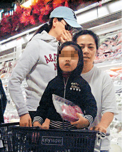 當(dāng)日大約下午5時,剛買完面包的新潮媽媽琦琦背著綠色的Chanel皮袋,以一身棉外套及貼身藍(lán)牛出現(xiàn)在IFC內(nèi)的超級市場,只見身材高大的晴佳站在由菲傭手推的購物車上,全程用英語跟媽媽交談,還不時說出No No的聲音。然后,儼然女王一樣,指手畫腳,原來,晴佳因為想吃牛肉,不喜歡母親放在車上的蘑菇,于是不斷說出No No來表示不喜歡。而溺愛女兒的琦琦真的順從了女兒的意思,到肉柜拿取60元一包的新鮮牛肉,還另外拿多一包給她作選擇,而目的達(dá)到的晴佳還開心得拿著牛肉久久不放。