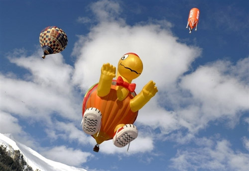 第30屆瑞士黛堡國際熱氣球節(jié)1月19日-30日在中部阿爾卑斯山區(qū)腹地的黛堡小鎮(zhèn)絢麗開場。期間有來自18個(gè)國家的140多名選手?jǐn)y90多只造型各異的熱氣球參賽。