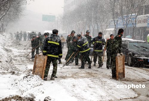 1月13日起至今,河南信陽遭受50年不遇雪災。信陽消防支隊緊急成立戰雪“應急隊”,隨時應對突發的災害事故。據悉,該應急隊1月11日至27日,共出警58次,出動車輛260臺次,動用兵力3000余人次,撲救火災12起,協助電力部門緊急維修線路23處,參與交通事故搶險救援5起,處置房屋倒塌事故2起,其他救援1起,營救被困群眾7人,搶救疏散物資財產價值600余萬元。 中新社發 楊賀偉 攝