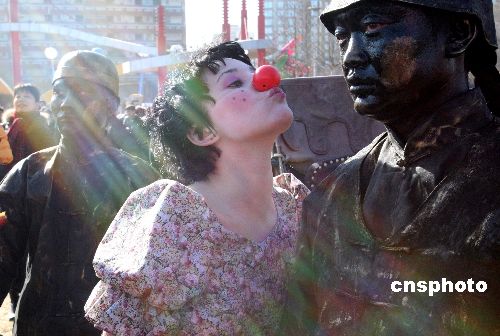 圖為中國藝術家展示的人體雕塑吸引外國藝術家。