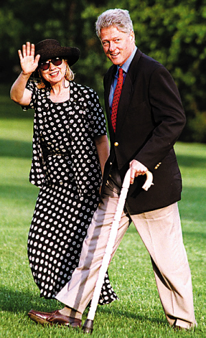 1997年,希拉里與克林頓出席一個公開場合,將圖案情意結發揮得淋漓盡致,黑底白波點連外套長裙將她幻化成一張“人肉包裝紙”,她硬撐著說:“那套衣服不是這么糟,只是較為令人眼花而已!