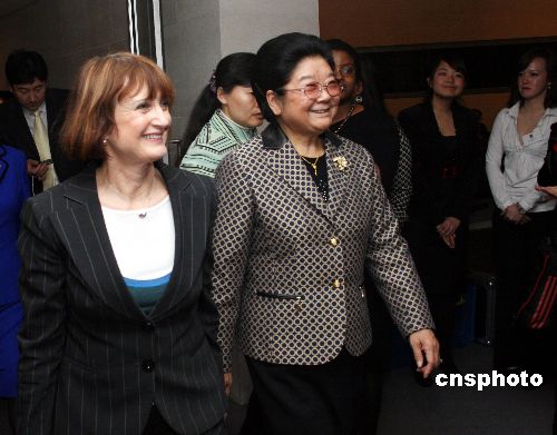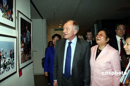 當地時間11日晚,中國全國人大常委會副委員長、全國婦聯主席顧秀蓮在倫敦市長利文斯通的陪同下,參觀在倫敦市政廳舉辦的“中國婦女”攝影展。