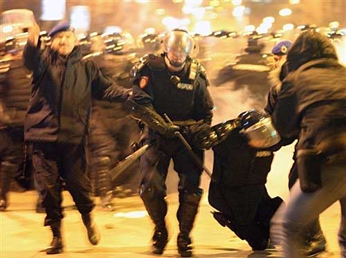 反科索沃獨立示威變成騷亂 塞族青年攻擊美歐使館
