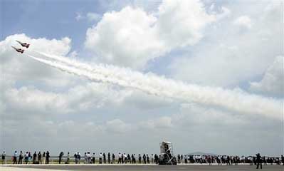 組圖:特技飛行隊(duì)在新加坡航展上的精彩表演(4)