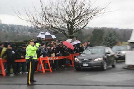 加拿大及來(lái)自香港記者都在想方設(shè)法尋找警方保安的漏洞,希望接近肥肥下葬的墓地,紛紛繞著方圓幾公里的墓園轉(zhuǎn)圈。不過(guò),警方似乎就有準(zhǔn)備,在所有有機(jī)會(huì)進(jìn)入墓園出入口都派多人把守,另外,在一些有可能拍攝到下葬地點(diǎn),甚至送殯隊(duì)伍經(jīng)過(guò)路線的墓園邊,也派駐大批警員。幾乎是三步一崗、五步一哨。連記者接近墓園邊界的鐵絲網(wǎng),也被警員阻止。