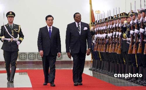 中國國家主席胡錦濤在北京人民大會堂舉行儀式,歡迎來訪的馬拉維共和國總統賓古·瓦·穆塔里卡。中新社發 盛佳鵬 攝