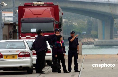 三月二十五日,香港警隊高層視察沉船的現(xiàn)場。中新社發(fā) 譚達明 攝