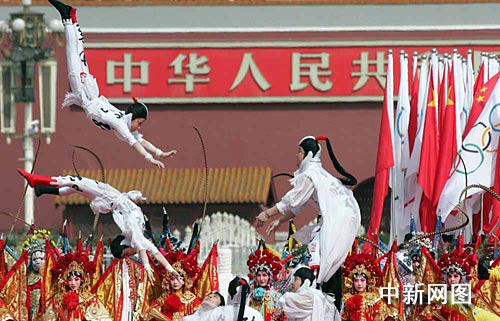 3月31日,北京奧運會圣火歡迎儀式暨傳遞啟動儀式在北京天安門廣場啟動。圖為儀式現場。中新社發 張宇 攝