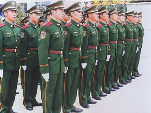 一、著裝的年代不符。武警部隊自2005年1月1日起,全體官兵統一佩戴胸標和臂章,而照片上武警士兵的著裝既無胸標,也無臂章,該照片顯然是2005年1月1日之前所拍。自2006年5月1日始,武警部隊戰士統一換著05式服裝,其服裝材質由布料改為仿毛面料,挺括舒展,而照片上顯示武警戰士穿著的是87式布料服裝。顯然,照片上反映的服裝與部隊現行著裝不是一個年代。