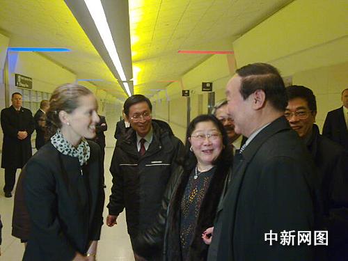 蔣效愚與前來迎接的華人代表與美國友人交談。