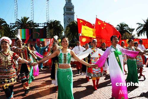 組圖:海外同胞支持北京奧運 護衛(wèi)圣火傳遞 (7)