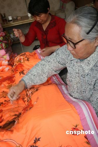 5月19日,在山東博興縣城東街道辦事處顧家村,幾名農(nóng)家婦女正在趕制新被,她們打算將縫制好的被褥,通過當(dāng)?shù)赜嘘P(guān)慈善部門捐往地震災(zāi)區(qū)。 四川省汶川縣5月12日發(fā)生8.0級(jí)地震后,災(zāi)情時(shí)刻牽動(dòng)著當(dāng)?shù)剞r(nóng)民的心,他們通過看電視、聽廣播等各種方式高度關(guān)注抗震救災(zāi)進(jìn)展情況,他們踴躍向?yàn)?zāi)區(qū)捐錢、捐物,當(dāng)他們了解到災(zāi)區(qū)缺乏被褥等生活用品時(shí),自己出錢購買回了布料、棉花絨等,趕制被褥,希望能以最快的速度送往災(zāi)區(qū),幫助災(zāi)區(qū)人民群眾早日度過難關(guān),恢復(fù)正常生活。