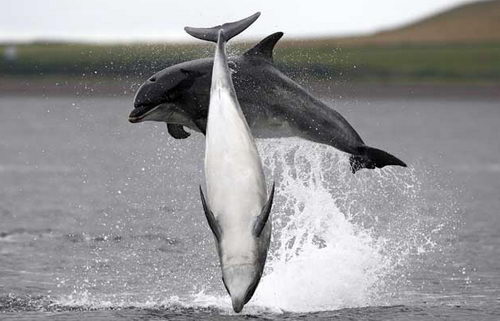 旁觀者在看到瓶鼻海豚跳水嬉游的景象時經常會誤認為他們在觀看一場精心設計的演出,但對于那些在船上近距離觀看海豚的人們來說,海豚跳水嬉游的景象很自然,它們完全是率性而為。那些幸運的游客可以看到三頭海豚在藍色的天空下跳水、海豚捕食鮭魚的跡象。一位乘船觀看海豚的游客稱:“這真是難以置信,我們與它們那么接近,這看起來好像是它們試圖想向我們展示它們的能力。它們動作的協調性難以置信,你有時會認為它們會撞到一起。觀看它們捕食鮭魚是一件更棒的事情。”