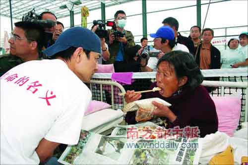 當(dāng)天,一眾藝人們到“東方汽輪”時(shí),先默哀了一分鐘,再開始探訪工作。之后一眾藝人探訪當(dāng)?shù)蒯t(yī)院時(shí),更一度引起騷亂,不論是病人還是醫(yī)護(hù)人員,看到劉德華等明星來訪都十分興奮,甚至有病人馬上跑下床要求簽名合照。而明星們都來者不拒,并且對(duì)年老病患者十分關(guān)懷,華仔及鄭秀文等更坐到一些婆婆床邊跟她們聊天。