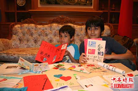 中新網6月4日電 據《中希時報/希臘歐洲聯合周報》報道,國際兒童節這一天,雅典乾合文化交流中心學習漢語和武術的希臘小朋友代表來到中國駐希臘大使館,遞交了他們獻給中國地震災區小朋友的40余張愛心卡片和4500歐元捐款。除此之外,他們還為災區的孩子制作了一本以照片為主的小冊子,介紹文化交流中心學員的學習生活,以及他們向往中國、熱愛中國文化的友好意愿。小冊子中還附有介紹希臘的文章,向災區的孩子介紹希臘近況,并希望他們像希臘多次受地震洗劫的圣托里尼島的居民一樣,勇敢的面對生活。