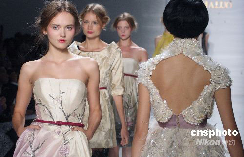 圖為世界名模參加中國(guó)女裝設(shè)計(jì)師羅崢作品展示。中新社發(fā) 錢(qián)興強(qiáng) 攝