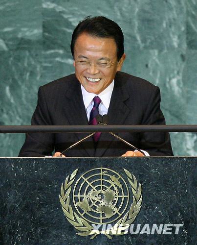 9月25日,在美國紐約聯合國總部,參加聯大一般性辯論的日本首相麻生太郎用日語講了幾分鐘后得知大會的日語翻譯未就位,臺下代表聽不懂他說什么時不禁有些尷尬地啞然失笑。當日,第63屆聯大一般性辯論進入第三天。新華社記者 侯俊 攝