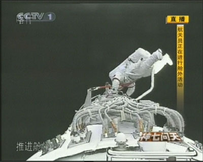 9月27日,“神七”航天員翟志剛出艙活動結束返回軌道艙。