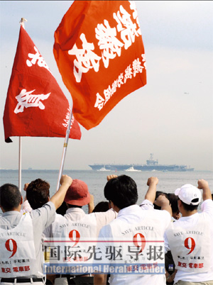 國際先驅導報記者劉贊 特約撰稿秦帆發(fā)自東京 結束采訪走出美軍基地時,基地大門前多了一隊全副武裝的防暴警察,一副嚴陣以待的架勢。兩名站崗的警察告訴《國際先驅導報》記者,平時基地門口就只有他們值班,但當天為防止市民們抗議示威而增加了警力。此時在能看到航母經(jīng)過的岸邊,已聚集了數(shù)百名反對“華盛頓”號進駐的居民揮舞拳頭高喊:“‘華盛頓’號滾回家去!”