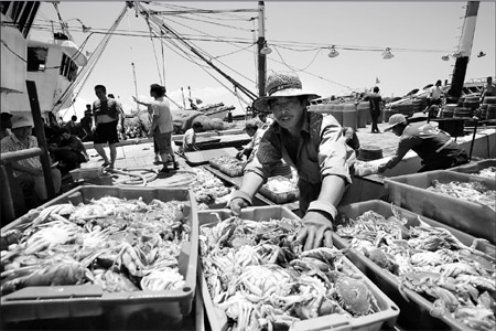 根據《中韓漁業協定》,中國漁民到韓國管轄水域從事漁業活動的漁船,每日必須在當日下午14:00時之前向所在縣(市)主管部門報告如下信息:作業類型、許可證號、船名號、作業起止時間、中午12時GPS上的經緯度、前日正午12時至當日正午12時的漁獲量!盎鶎又鸺墔R報到黃渤海海區局,再專門給韓國通報。韓國一旦 發現有出入的地方就會扣押你!鄙垩嗥秸f:“以日志錯誤為例,50噸以下的船要罰300萬韓元,50~80噸的罰500萬韓元,80噸以上罰1000萬韓元。如果無證作業罰得更多。”