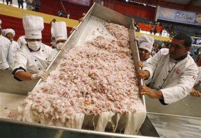 吉尼斯紀錄上目前登錄的南美風味檸檬魚,是墨西哥在三年前所寫下,重量4.5噸;秘魯做出的這道冷盤,比墨西哥的紀錄重了兩噸多。
