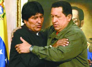 查韋斯于2001年提出“玻利瓦爾美洲國家替代計劃”,旨在加強(qiáng)拉美和加勒比地區(qū)國家間的經(jīng)貿(mào)合作和一體化,抵制美國倡導(dǎo)建立的美洲自由貿(mào)易區(qū)。該計劃目前有五個實施國,分別為委內(nèi)瑞拉、古巴、玻利維亞、尼加拉瓜和多米尼加。不過,多米尼加并未派遣代表參與此次會晤。