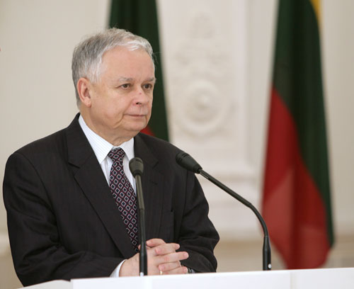 資料圖為4月8日,波蘭總統(tǒng)卡欽斯基在立陶宛訪問。