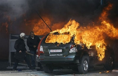 據英國廣播公司報道,大約一千名反對科索沃獨立的塞族抗議者周二(19日)沖擊亞林涅和巴尼亞兩個邊境過境點,并縱火燒毀了邊境站的海關和警察崗亭。