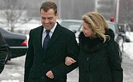 3月2日,俄羅斯舉行總統大選。參加總統大選共有四名候選人:共產黨領導人久加諾夫、自由民主黨領導人日里諾夫斯基、由統俄黨和統一俄羅斯黨等四個黨派聯合推舉的候選人梅德韋杰夫及俄羅斯民主黨領導人波格丹諾夫。