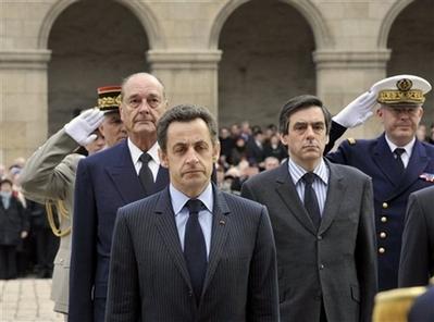 中新網3月18日電 綜合報道,法國政府17日為去世的第一次世界大戰最后一位老兵拉扎爾·蒙蒂塞利舉行國葬,以此向所有參加過一戰的法國軍人致敬。法國總統薩科齊和前總統希拉克17日上午在巴黎榮軍院參加為此舉行的閱兵儀式,全國各地政府機關和學校等建筑下半旗致哀。