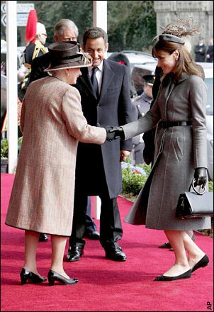 薩科齊夫婦隨后來(lái)到溫莎堡,英國(guó)女王在那里迎接他們到訪。卡拉·布呂尼向女王行屈膝禮,之前布呂尼已經(jīng)為這次見(jiàn)面準(zhǔn)備了很長(zhǎng)時(shí)間。薩科齊則在女王丈夫菲利浦親王的陪同下檢閱了英國(guó)皇家軍隊(duì)。