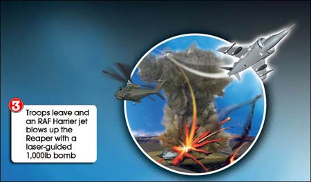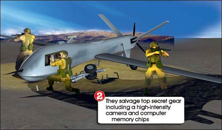 據報道,這架“死神”無人駕駛偵察機在此前執行一項特別任務時墜落。英國皇家特種舟艇部隊(SBS)派出人員,乘直升機降落在偵察機墜落地點附近,將包括相機和電腦存儲器在內的一些高機密儀器取走。