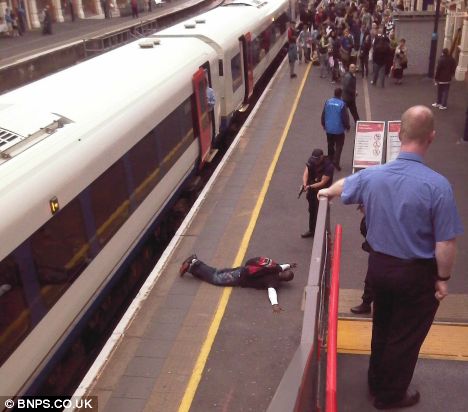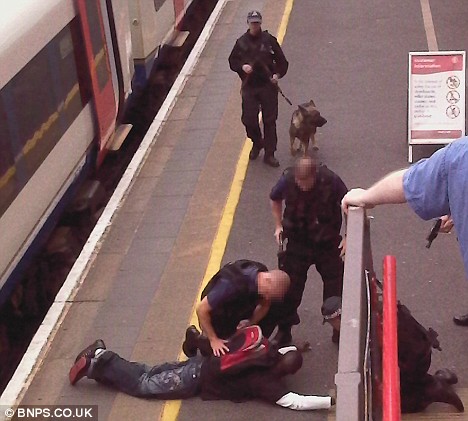 就在英國警方抓捕這名無辜男子時,一名在現(xiàn)場的乘客使用手機拍下了有關(guān)過程。有目擊者對記者說,“當時有很多人都在排隊買票,但突然有多名全付武裝的警察沖進車站,他們的人數(shù)大約有10個人,有些警察拿著手槍,另外還有一條警犬。我聽見有人說:不要讓任何人走下火車或者離開站臺。隨后火車站所有的出口都被封鎖了。火車的車門打開后,那名男子剛一走下站臺,就被命令趴在地上,他被要求伸開雙手并靠攏雙腿。警方對這名男子的背包進行了認真的搜查,然后又把他帶到一間廢棄不用的盥洗間,可能是對他進行一步的搜查。這一幕真是讓人感到非常恐怖。”