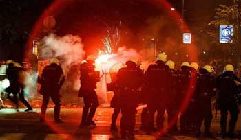 29日晚的抗議集會吸引約2萬人,這一人數比組織者所希望的少。100名據信是貝爾格萊德紅星足球俱樂部支持者隨后離開抗議集會人群,他們向防暴警察扔磚頭、炮竹,警方則用催淚彈和橡皮子彈進行反擊。貝爾格萊德市中心很快變成一個垃圾場,街上到處都是玻璃和其它垃圾,40余人在沖突中受傷,其中包括一名西班牙攝影師。
